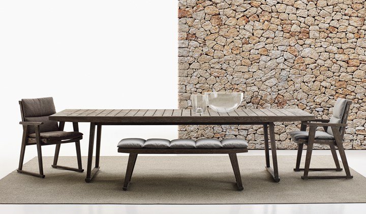 Коллекция Gio от B&B Italia Outdoor предлагает мебель из антикварного серого тика, который придает изделиям благородный и ухоженный вид. Сиденья оснащены мягкими подушками и экрю-лентами, обеспечивая максимальный комфорт и стиль. Эти элементы идеально подходят как для загородного дома, так и для городской террасы.