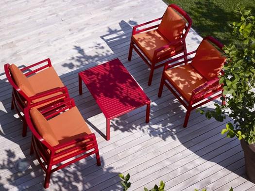 Диван Aria обладает прочной решетчатой структурой и устойчив к атмосферным воздействиям, идеально подходя для использования на открытом воздухе.