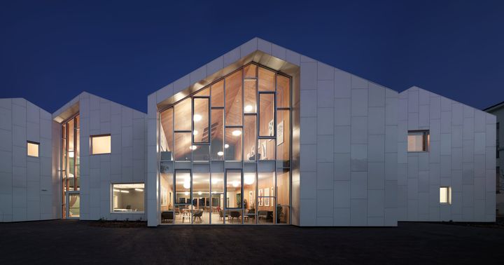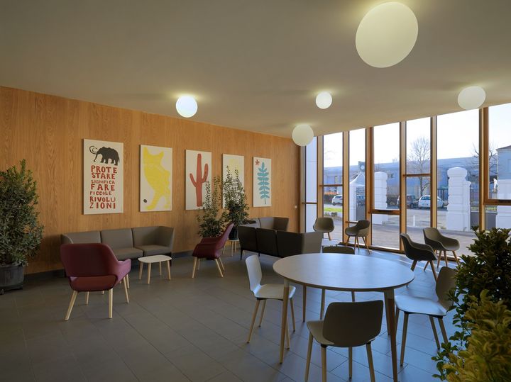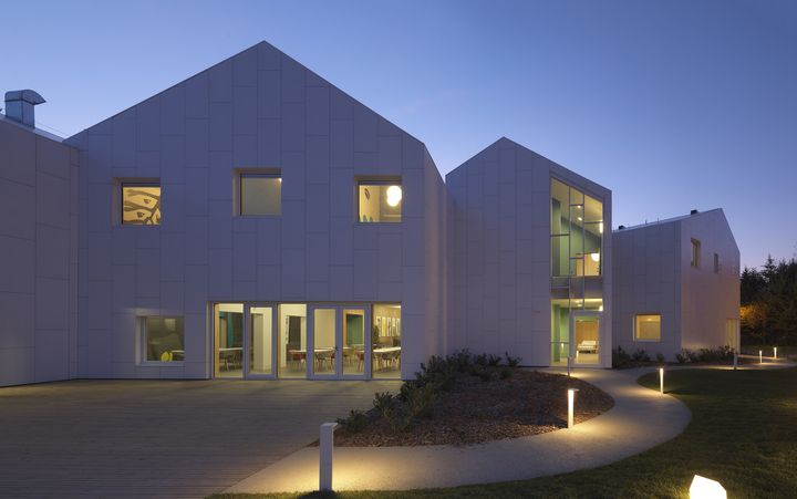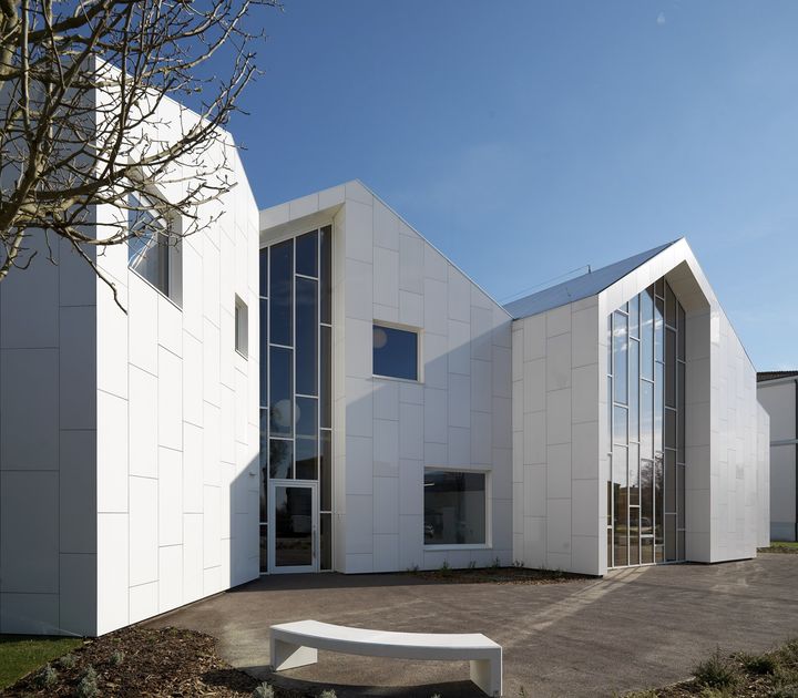 Линейка Kerlite 5plus Ultrawhite используется для внешнего покрытия, обеспечивая эластичность и прочность. Внутренние покрытия выполнены из коллекции Blutech, создавая гармоничный интерьер.