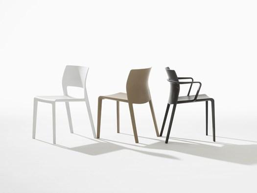 Кресло Saya, созданное из многослойного дуба, отличается культовой формой и сильным силуэтом. Juno, изготовленное из полипропилена, предлагает множество вариантов использования как внутри, так и снаружи помещений.