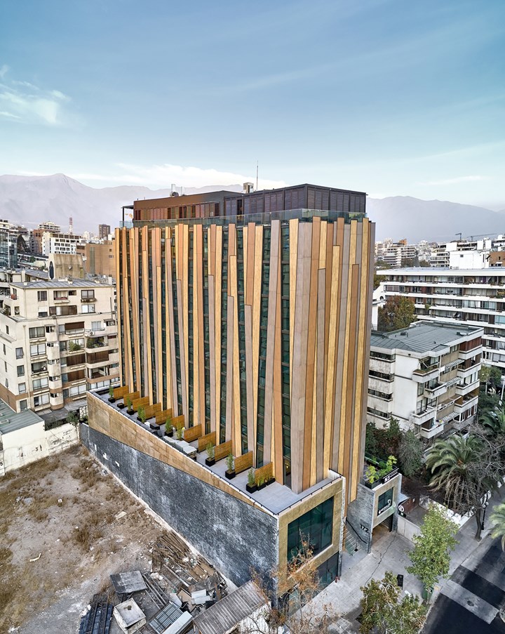Проект Hotel Nodo в Южной Америке, созданный Риккардо Штайном, использует биоактивные поверхности Laminam для борьбы с загрязнением воздуха. Эти поверхности очищают воздух, создавая эффект живого организма.