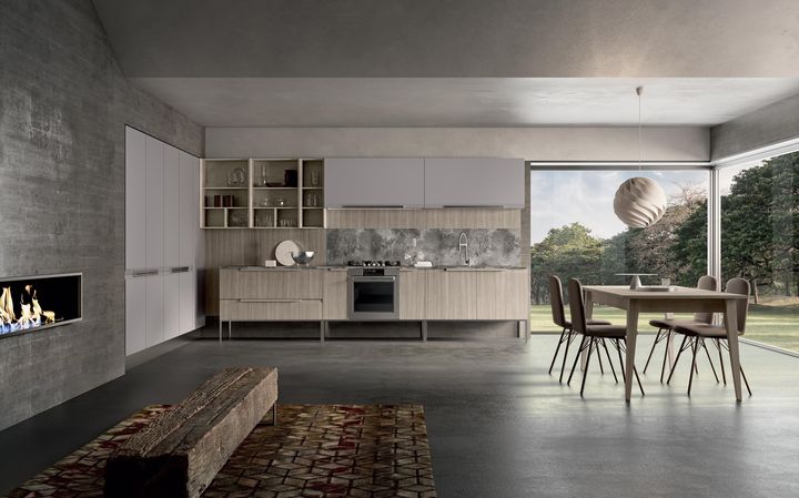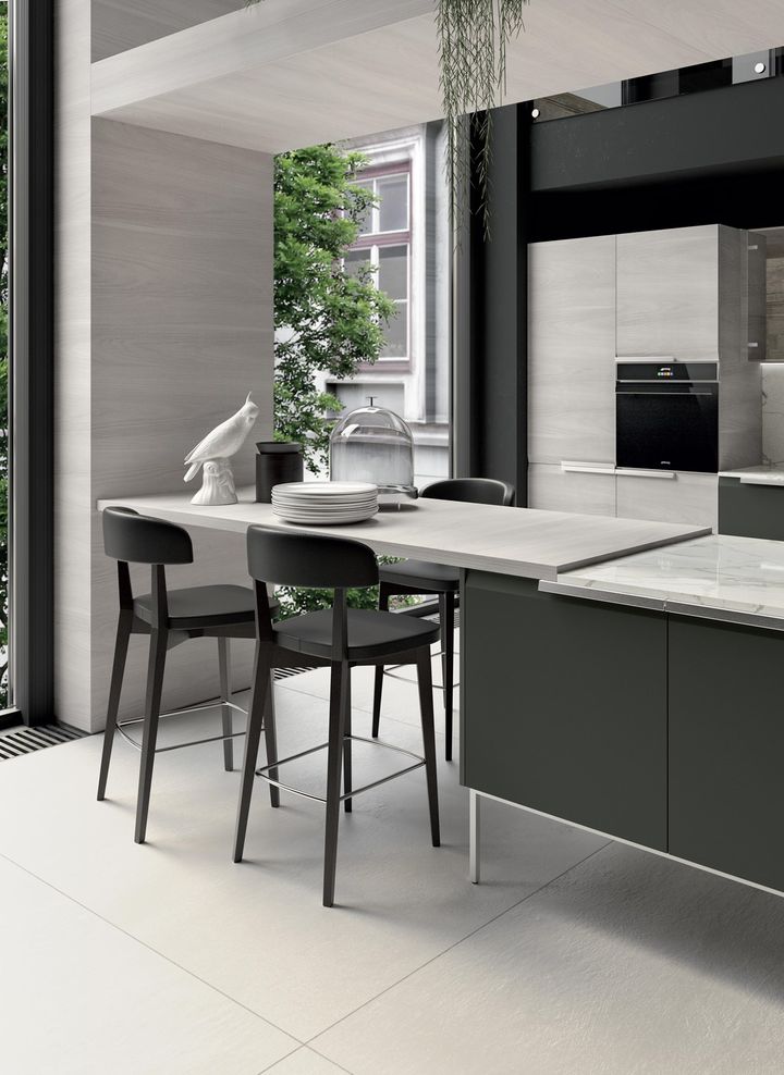 Коллекция включает в себя современные линии, сочетание древесных и лакированных поверхностей, а также функциональные элементы, такие как столы и стулья.