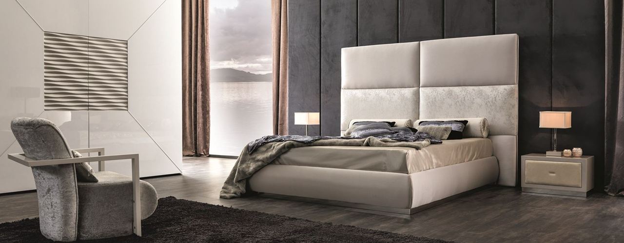 Линия Keope отличается использованием роскошных тканей и кожи в отделке. Высокое изголовье кроватей и возможность создания индивидуальных комбинаций делают эти модели идеальными для современного интерьера.