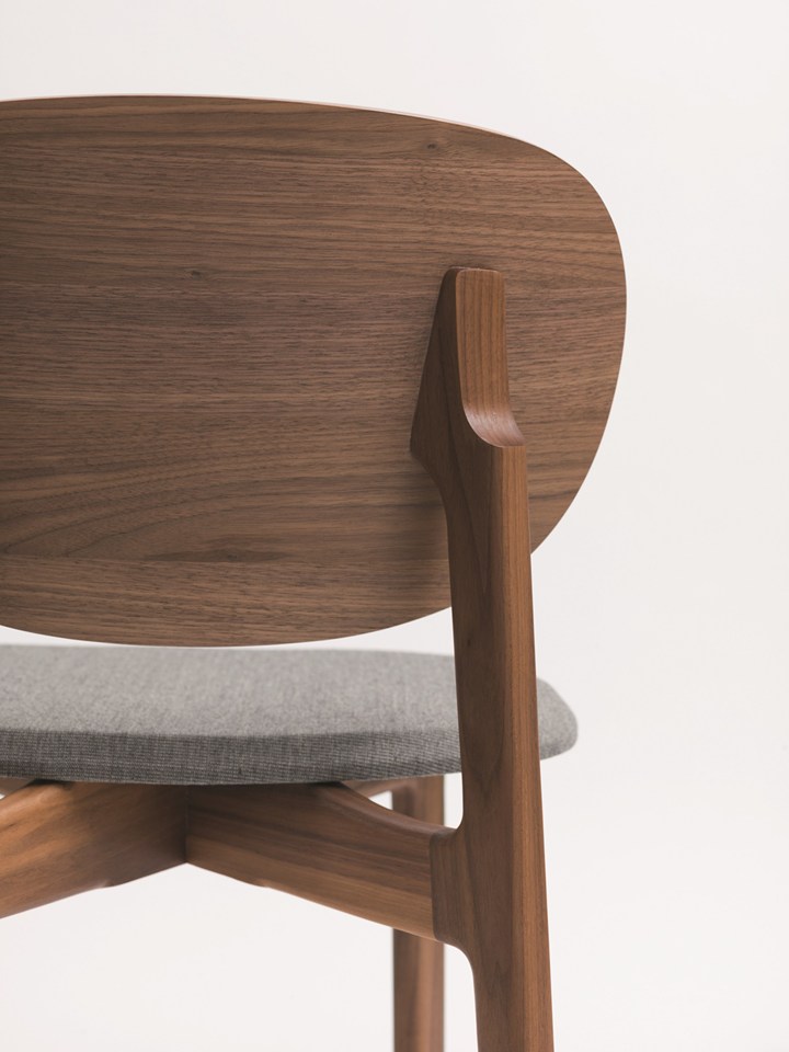 В коллекцию входят стулья, барные стулья и шезлонги. Каркас выполнен из массива дерева, а сиденье и спинка — из формованного дерева с возможностью обивки тканью. Это делает их идеальными для дома или стильного ресторана.