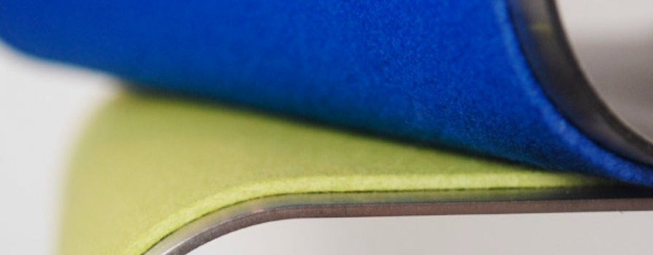 Инновационные стеновые стеллажи и мебель для отдыха, сочетающие нержавеющую сталь и войлок.