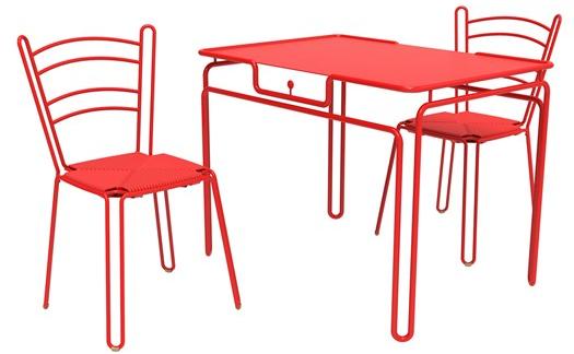 Коллекция включает столы и стулья, выполненные с применением современных материалов и технологий. Например, стул изготавливается с сиденьем из эластомера, что делает его долговечным и устойчивым к внешним воздействиям.