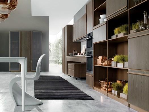 Модель Beluga, разработанная Ферруччо Лавиани, отличается уникальной композицией, где свет и тень играют ключевую роль. Использование металлических трубок и термообработанного дуба придает кухне современный вид.