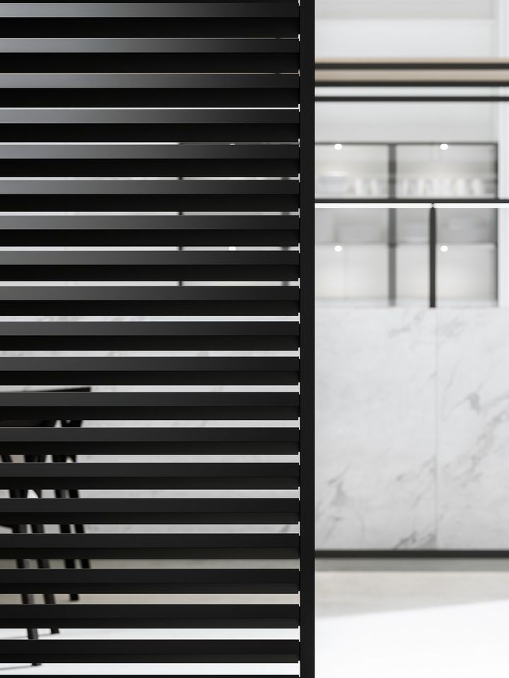 Двери с фильтрующими элементами, как Levante от ADL, обеспечивают контроль света и видимости, создавая уютную атмосферу. Они идеальны для больших помещений, где важно сохранить свет и уединение.