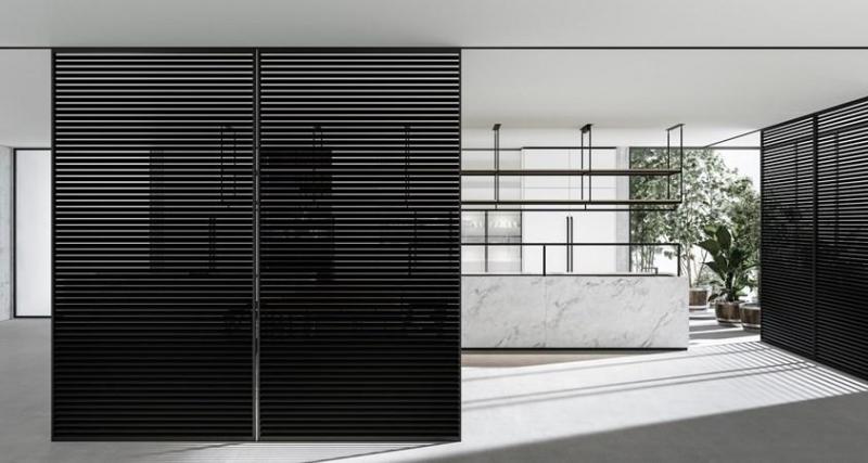 Двери с фильтрующими элементами, как Levante от ADL, обеспечивают контроль света и видимости, создавая уютную атмосферу. Они идеальны для больших помещений, где важно сохранить свет и уединение.
