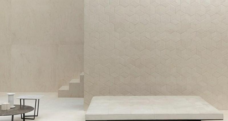 Salvatori предлагает Romboo — плитку, изготовленную из отходов мрамора. Она создает уникальные трехмерные эффекты при попадании света, что делает ее идеальной для использования в интерьере.