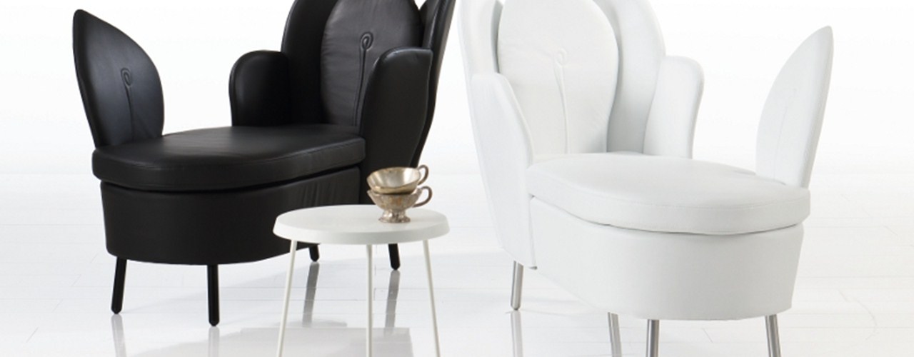 Кресла оснащены вращающейся базой или тонкими ножками, что позволяет адаптироваться к любому интерьеру. Шезлонги, выполненные из черной или белой кожи, выглядят элегантно и роскошно, а их конструкция позволяет удобно расположиться, поднимая ноги на специальную подставку.