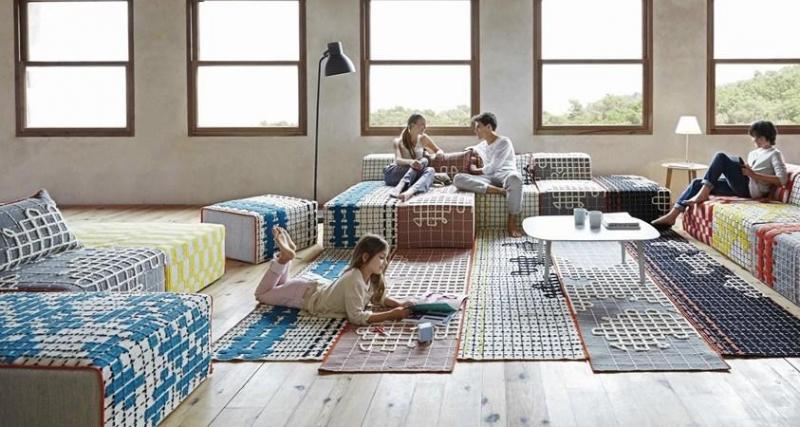 Ковры BANDAS отличаются уникальным дизайном, выполненным вручную, с возможностью модульного использования благодаря липучкам.