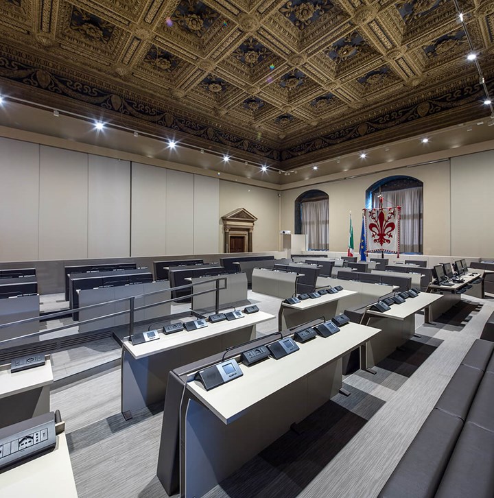 Залы для заседаний требуют особого подхода к выбору мебели, которая должна сочетать в себе традиции и современные технологии. LAMM предлагает решение для исторического Палаццо Веккьо.