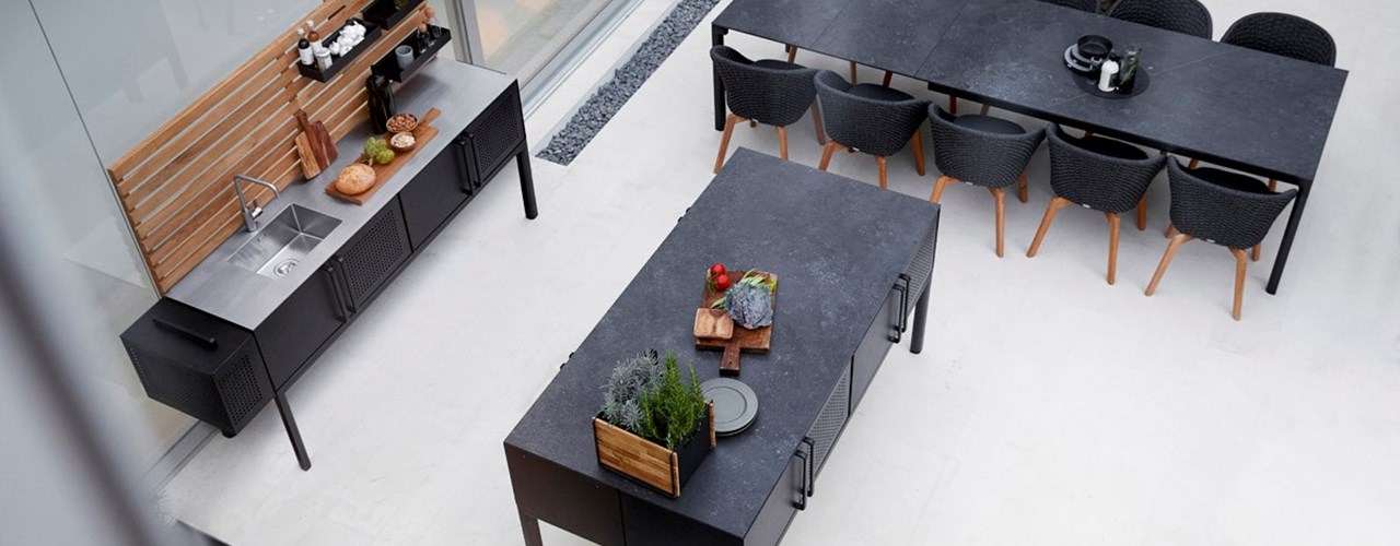 Уличная кухня Cane-line сочетает в себе стильный дизайн, долговечные материалы и функциональность.