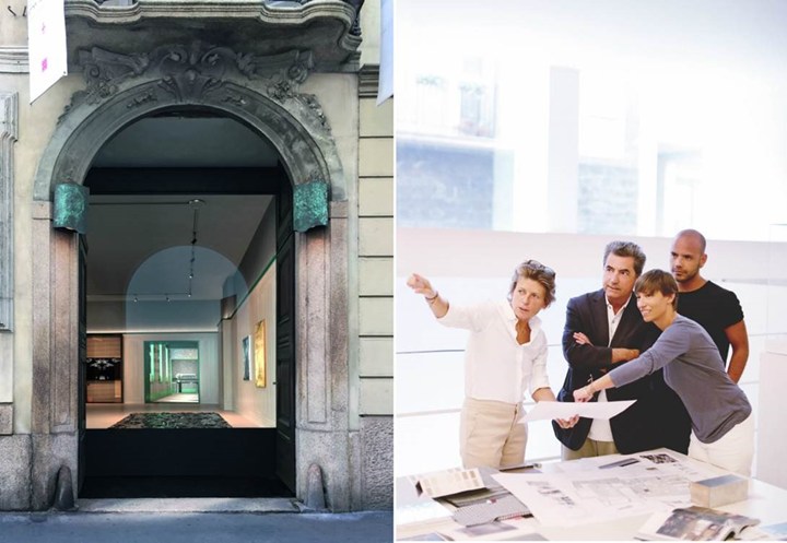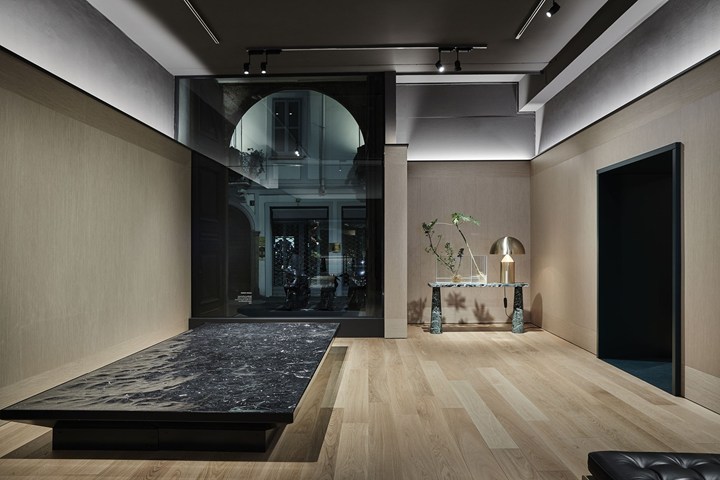 Черная и золотая версии лампы Atollo были использованы в концептуальном магазине и зоне Spa-Wellness, подчеркивая их уникальный стиль.