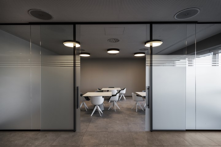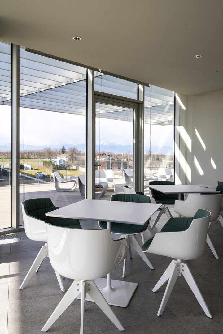 В офисном пространстве использованы мебель и решения от MDF Italia, такие как сидения Flow Slim и диваны Yale, которые обеспечивают комфорт и функциональность. Важно также отметить использование Tense столов в конференц-залах, которые способствуют открытому обмену идеями благодаря своей эргономике.