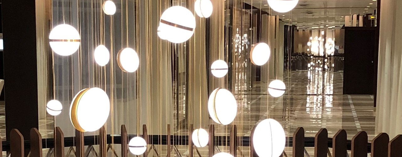 Новое творение Сильви Марешаль — это воплощение космической темы в интерьере. Инсталляция состоит из планет и звезд, создавая эффект миниатюрного Млечного Пути.