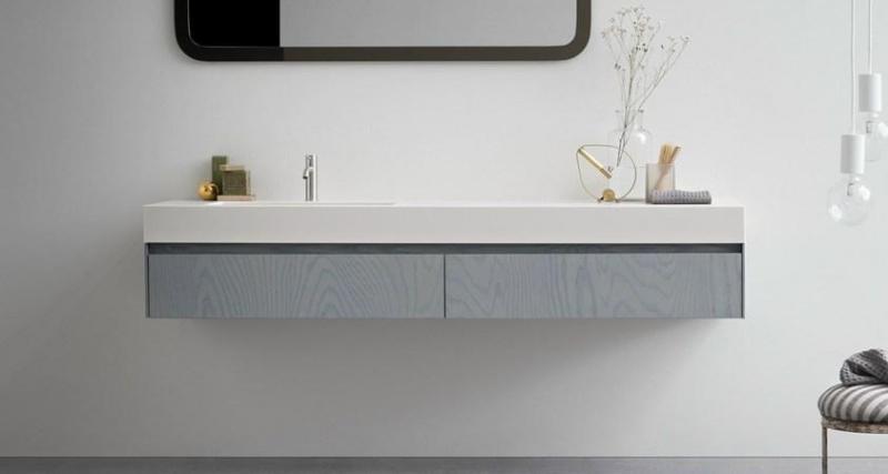 Коллекция включает умывальники и столешницы, выполненные из Corian®, Korakril™, Cocciopesto, которые обеспечивают долговечность и стильный вид.