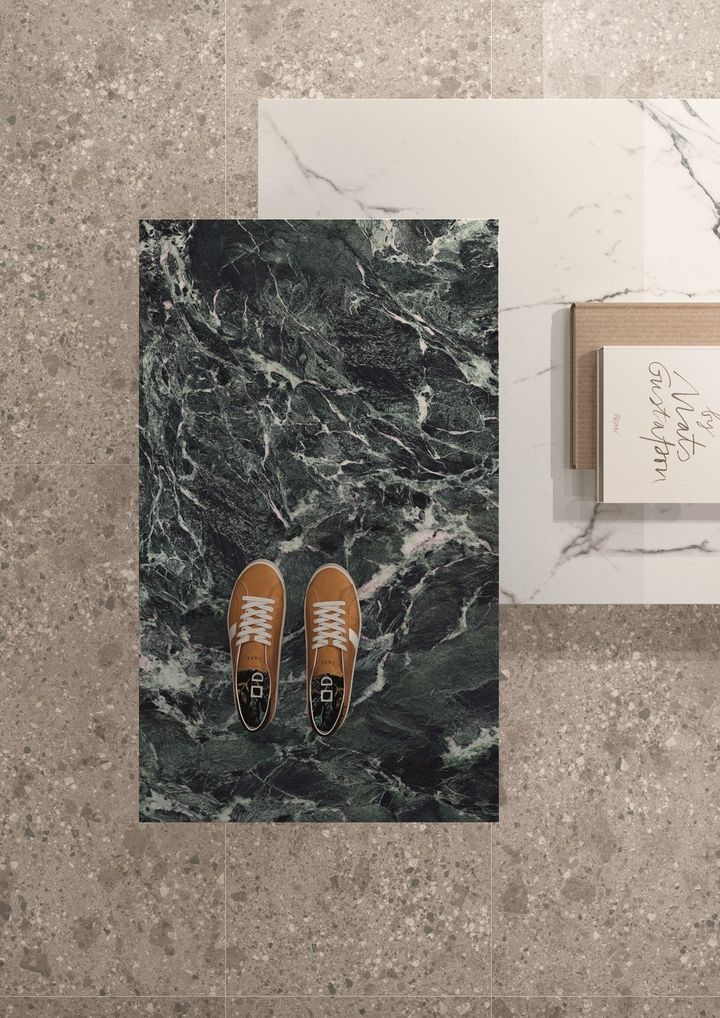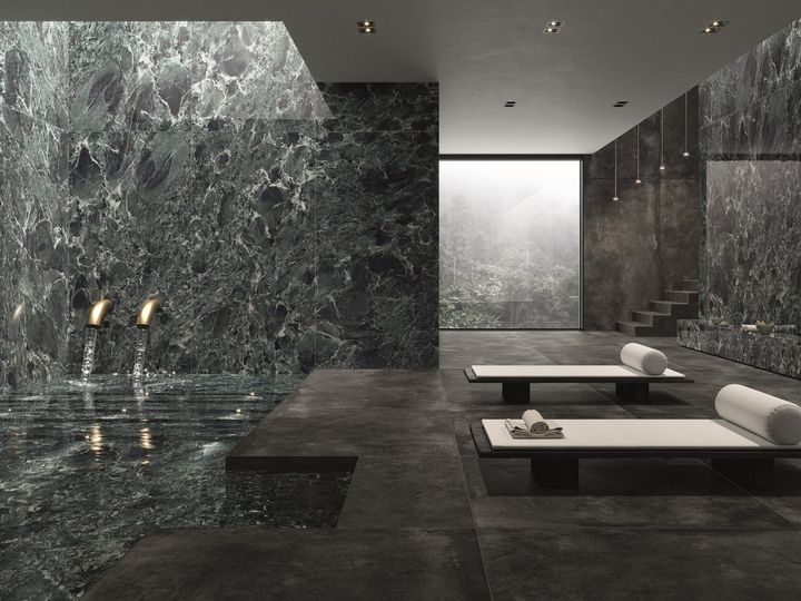 Это новая отделка из серии Ultra Marmi от Ariostea с уникальной текстурой и цветовой гаммой, имитирующей мрамор.