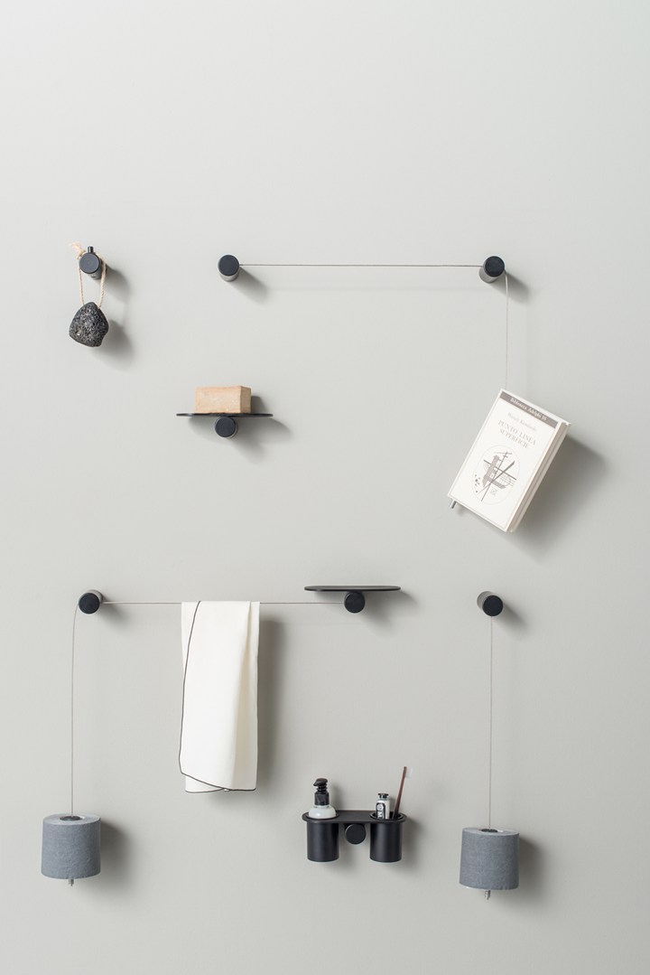В коллекции представлены аксессуары, такие как многофункциональные тросики, которые служат полотенцедержателями и опорами для аксессуаров. Они доступны в различных цветах и могут выдерживать значительные нагрузки.