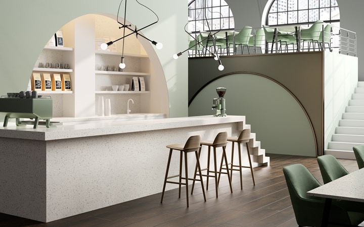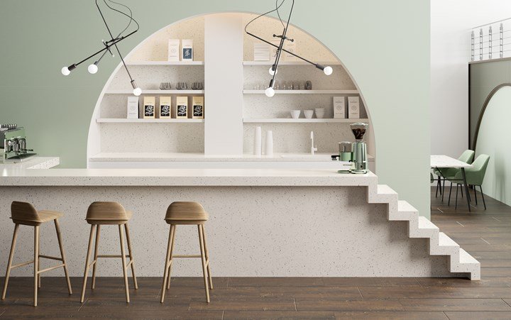 HI-MACS® представила два новых цвета: Terrazzo Classico и Terrazzo Grigio. Оба цвета отличаются своей универсальностью и стилем, подходящим как для жилых, так и коммерческих проектов.