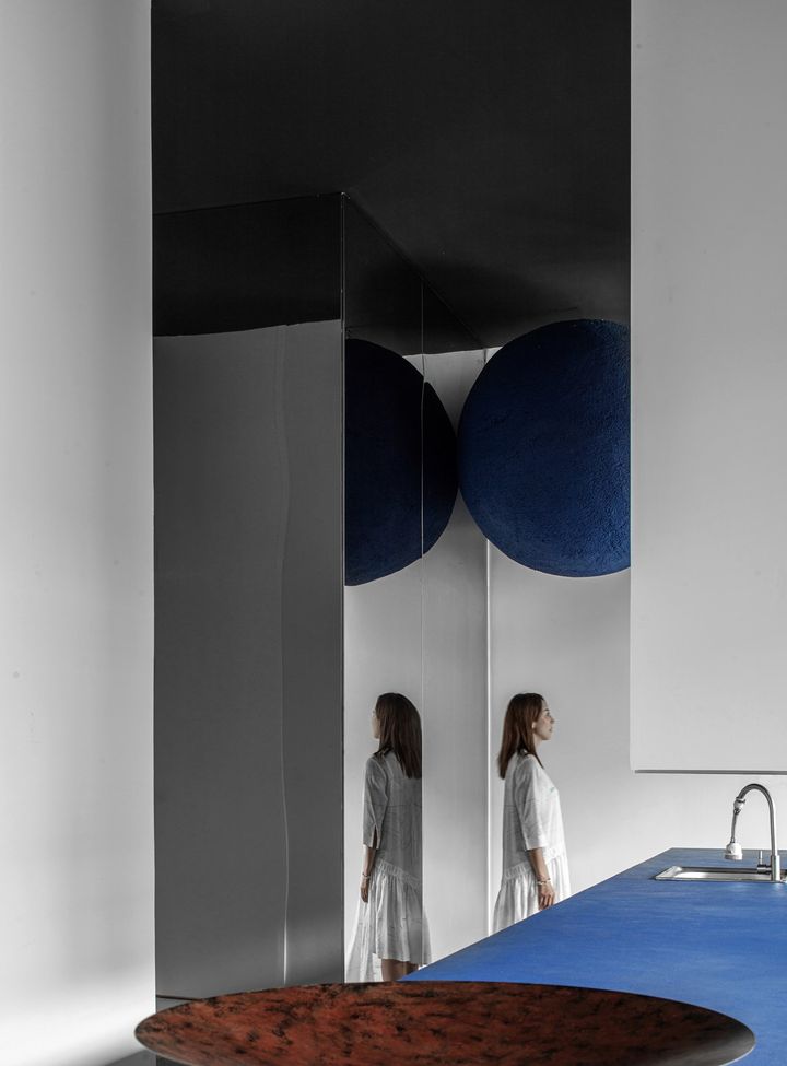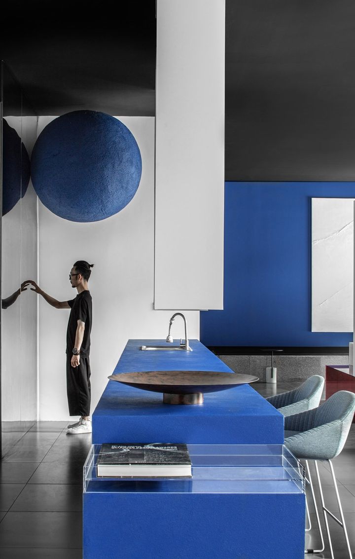 Среди решений — использование цвета электрик в сочетании с красным светом, создающим яркую и динамичную атмосферу.
