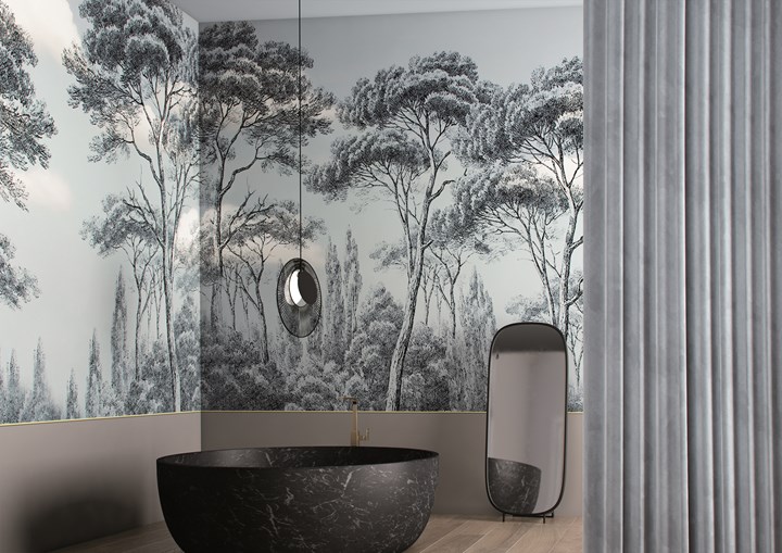Glamora предлагает серию IX, специально разработанную для влажных помещений. Благодаря технологии GlamFusion™, обои легко транспортировать и укладывать на существующие поверхности, избегая лишнего ремонта.