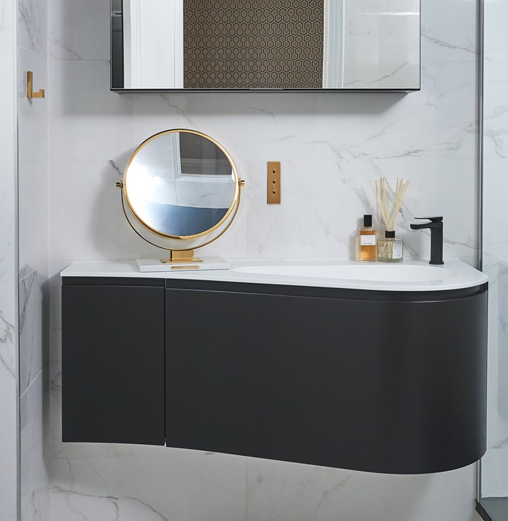 Modelec предлагает выключатели из благородных материалов, Miroir Brot — уникальные зеркала, Specimen — дизайнерскую мебель, а Arpin — стильные аксессуары для ванных комнат.