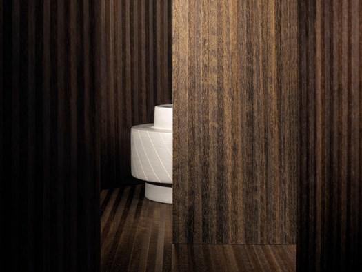 Riga отличается чередованием отрицательного и положительного шага, что создает эффект трехмерности. Материал разработан для создания мебели и интерьеров, где важны визуальные и тактильные ощущения.