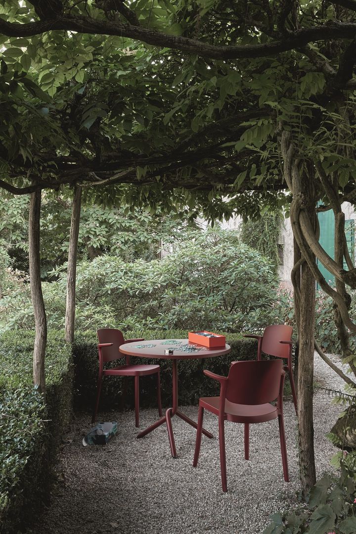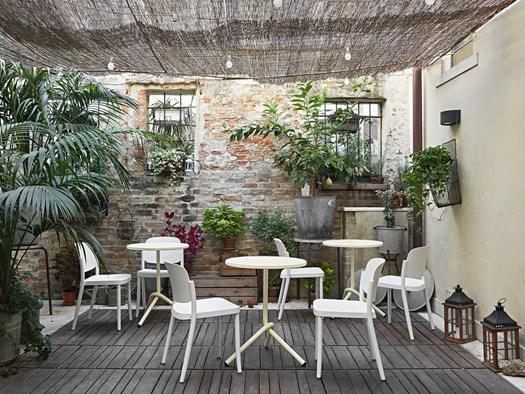 Кресло Piazza устойчиво к погодным условиям, доступно в различных цветах и вариантах с подлокотниками и без них.