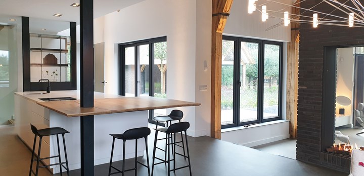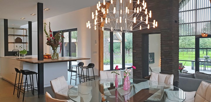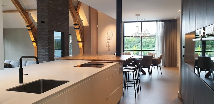 В Нидерландах HI-MACS® использовали в интерьере загородного дома. Большой кухонный остров с поверхностью Alpine White стал центром кухни, а в ванной комнате применили столешницы из этого же материала для создания атмосферного пространства.