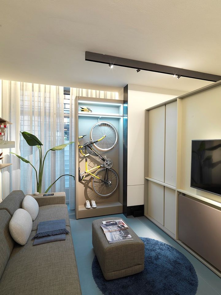 Особое внимание привлек модуль Smartworking, разработанный в ответ на изменения рабочих условий из-за пандемии. Этот модуль включает в себя все необходимое для организации рабочего пространства: стол, отделения для документов, розетки для подключения устройств.