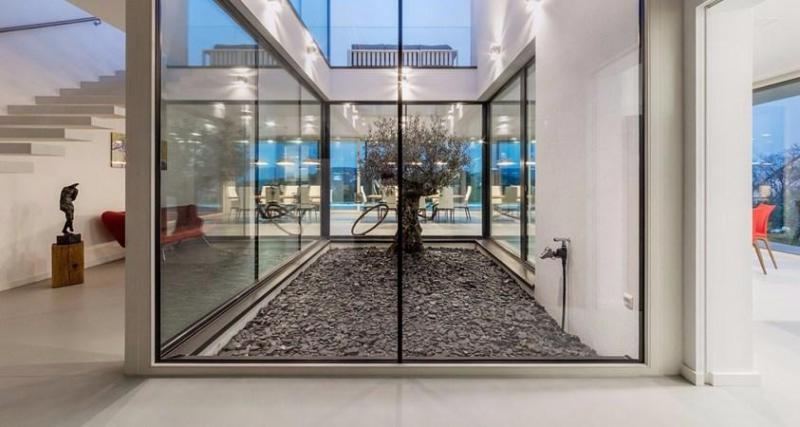Панорамная вилла в Будапеште примечательна использованием прозрачных стеклянных фасадов и монолитного бетона, что создает эффект единства с окружающим ландшафтом.