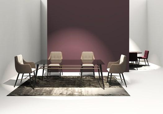Коллекция включает модульные системы диванов, столы и кресла, которые можно использовать как в столовой, так и в гостиной.
