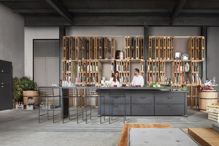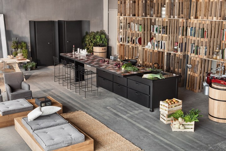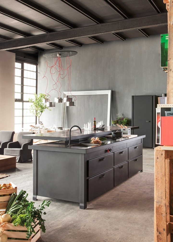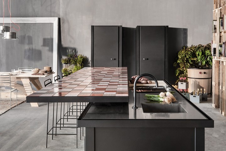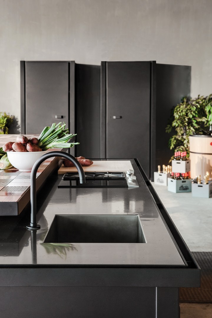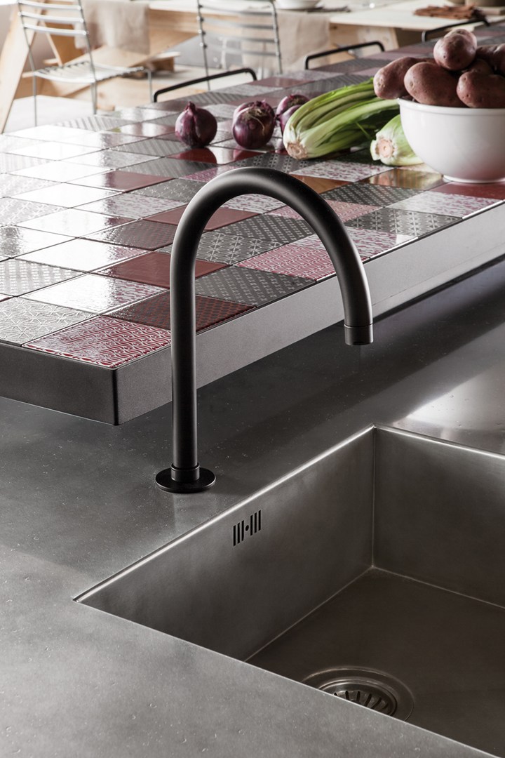 Кухня Minà отличается стальной столешницей с оловянным покрытием и плиткой из лавового камня. Эти материалы подчеркивают уникальный стиль и обеспечивают высокую износостойкость.