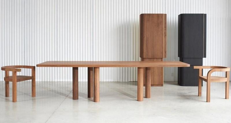 Коллекция Ostinato от Materia предлагает уникальные решения: шкафы, обеденные столы и стулья, разработанные с вниманием к деталям. Используются материалы, такие как массив ореха или ясеня, с богатой текстурой, что создаёт не только функциональную мебель, но и эстетически привлекательную.