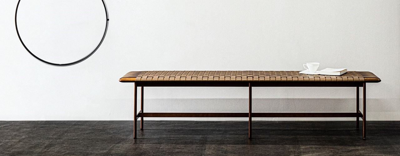 В коллекции представлены модели, такие как MO BRIDGE SMALL DESK и MO BRIDGE STOOL, которые идеально подходят для домашних офисов. Эти изделия отражают диалог между деревом и кожей. MT BENCH, с замысловатыми переплетениями кожаных ремней, подчеркивает внимание к деталям.