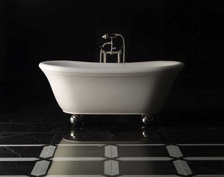 Культовые предметы, такие как ванна Admiral Colours и консоль Claridge, подчеркивают стиль и роскошь, сочетающиеся с современными элементами.