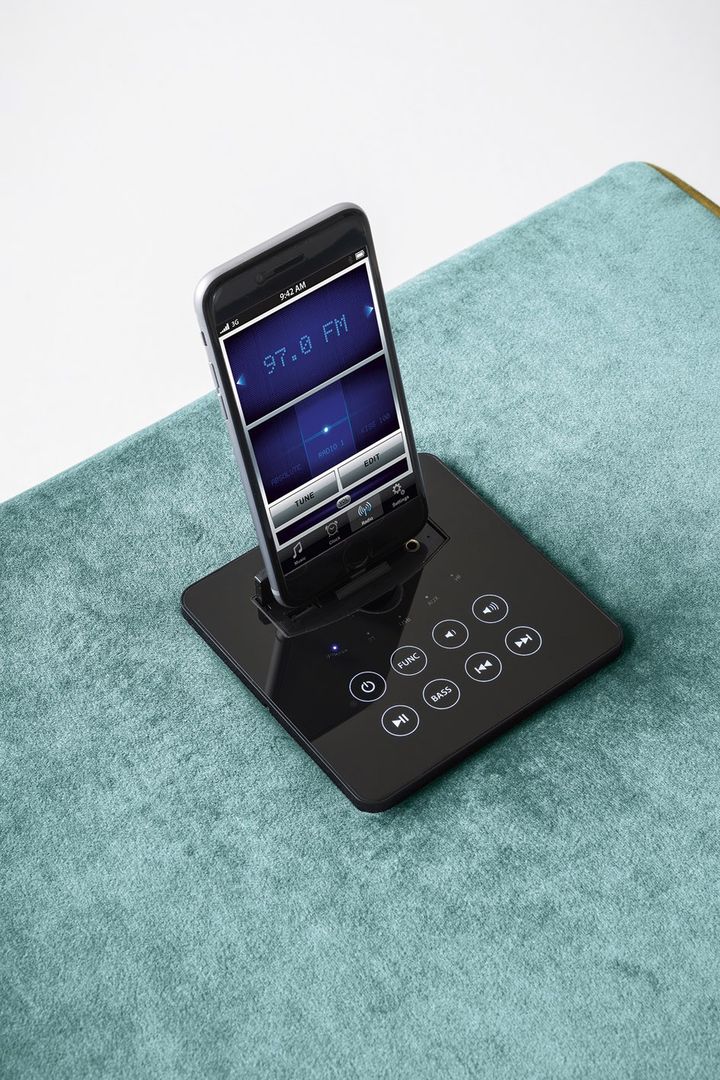 Zeppelin оснащен стереосистемой с двумя динамиками и сабвуфером, что обеспечивает высококачественное звучание. Обивка из вельвета и возможность персонализации делают его стильным дополнением интерьера.