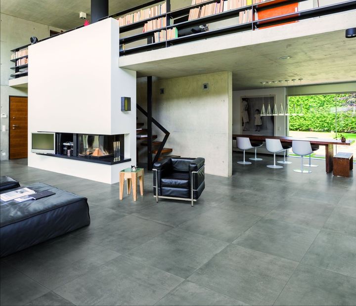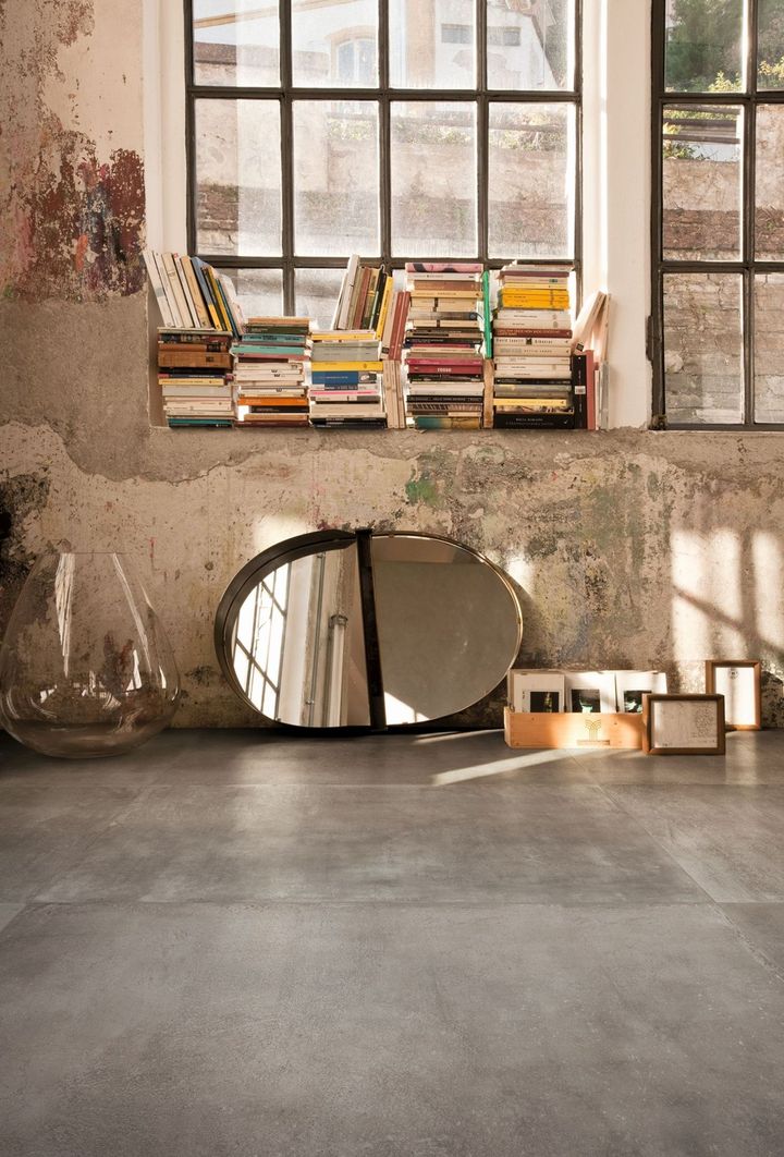 Керамогранит с эффектом бетона — идеальное решение для создания стильного интерьера. Он подходит для больших и небольших поверхностей.