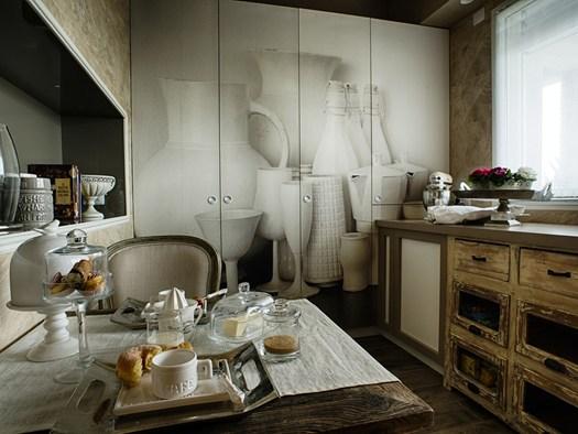Коллекция включает набивные ткани и обои, которые идеально подходят для разных комнат, от кухни до спальни. Цветовая палитра гармонична и создает уютную атмосферу.