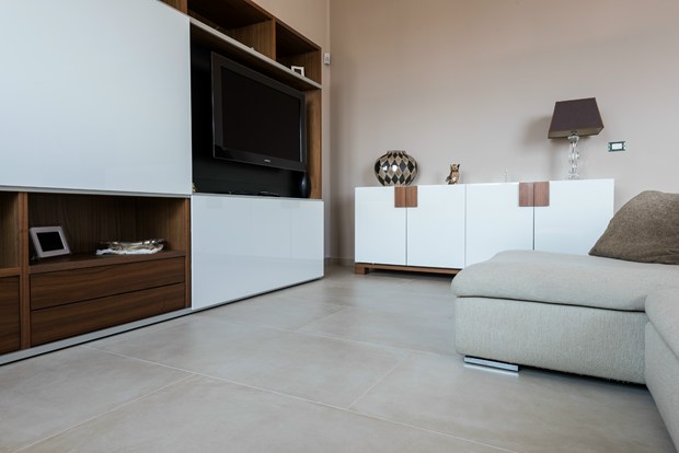 Коллекция One от Ceramiche Caesar предлагает решения для гостиной и ванной комнаты, подчеркивая элегантность и естественность пространства.
