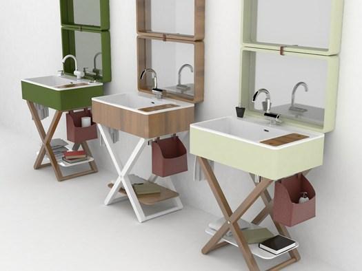 Умывальники My Bag имеют четкие линии и двуцветные краны. Они легко интегрируются в интерьер благодаря возможности трансформации и наличию дополнительных аксессуаров, таких как зеркала и диспенсеры.