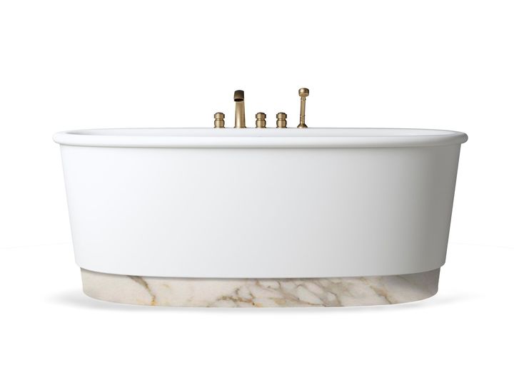Бассейн изготовлен из высококачественных материалов, таких как White Tec Plus и Calacatta Oro, что обеспечивает его долговечность и элегантность.