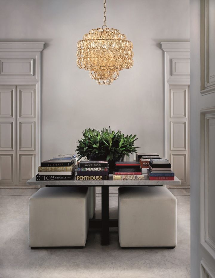 Разработанная Анджело Маджаротти в 1968 году, коллекция Giogali включает в себя подвесные, потолочные и настольные лампы. Уникальные элементы из хрусталя позволяют создавать разнообразные композиции, подходящие для любых помещений.