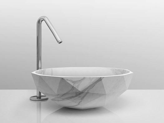 Модель Diamond, разработанная Паоло Улианом и Морено Ратти, демонстрирует инновационный подход к дизайну умывальников. Геометрическая фрагментация поверхности создает уникальные визуальные эффекты.