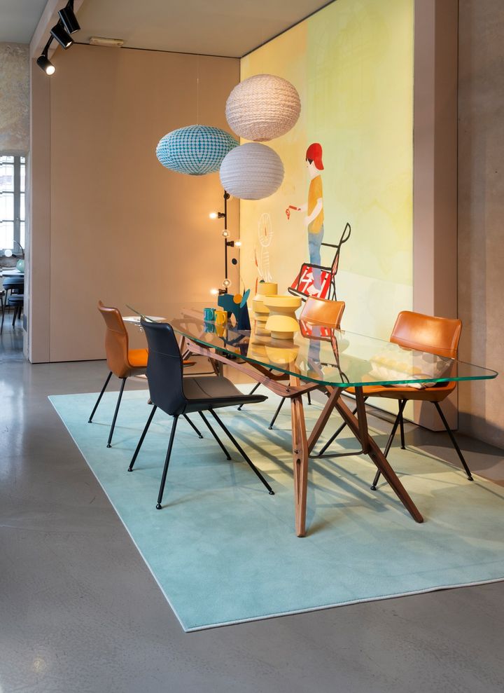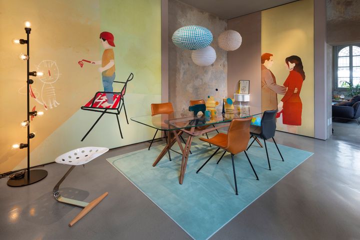 В новом выставочном зале в Милане представлены продукты коллекции Back и Mollino CM 2020. Пространство позволяет посетителям свободно перемещаться и оценивать предложения бренда.