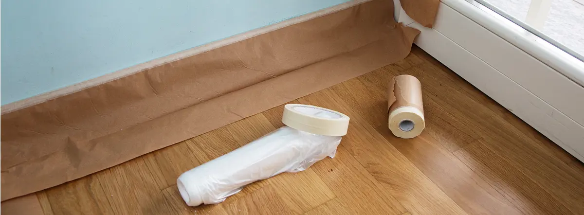 - Полиэтиленовая пленка с бумажным слоем: долговечна, но требует аккуратности — не предотвращает растекание краски. Используется при работе с большими поверхностями, например, полами.
