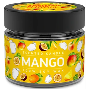 Свеча ароматизированная в стеклянной банке Манго маракуйя оранжевая 5.8 см