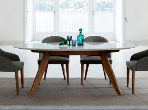 Овальный стол из дерева и стекла